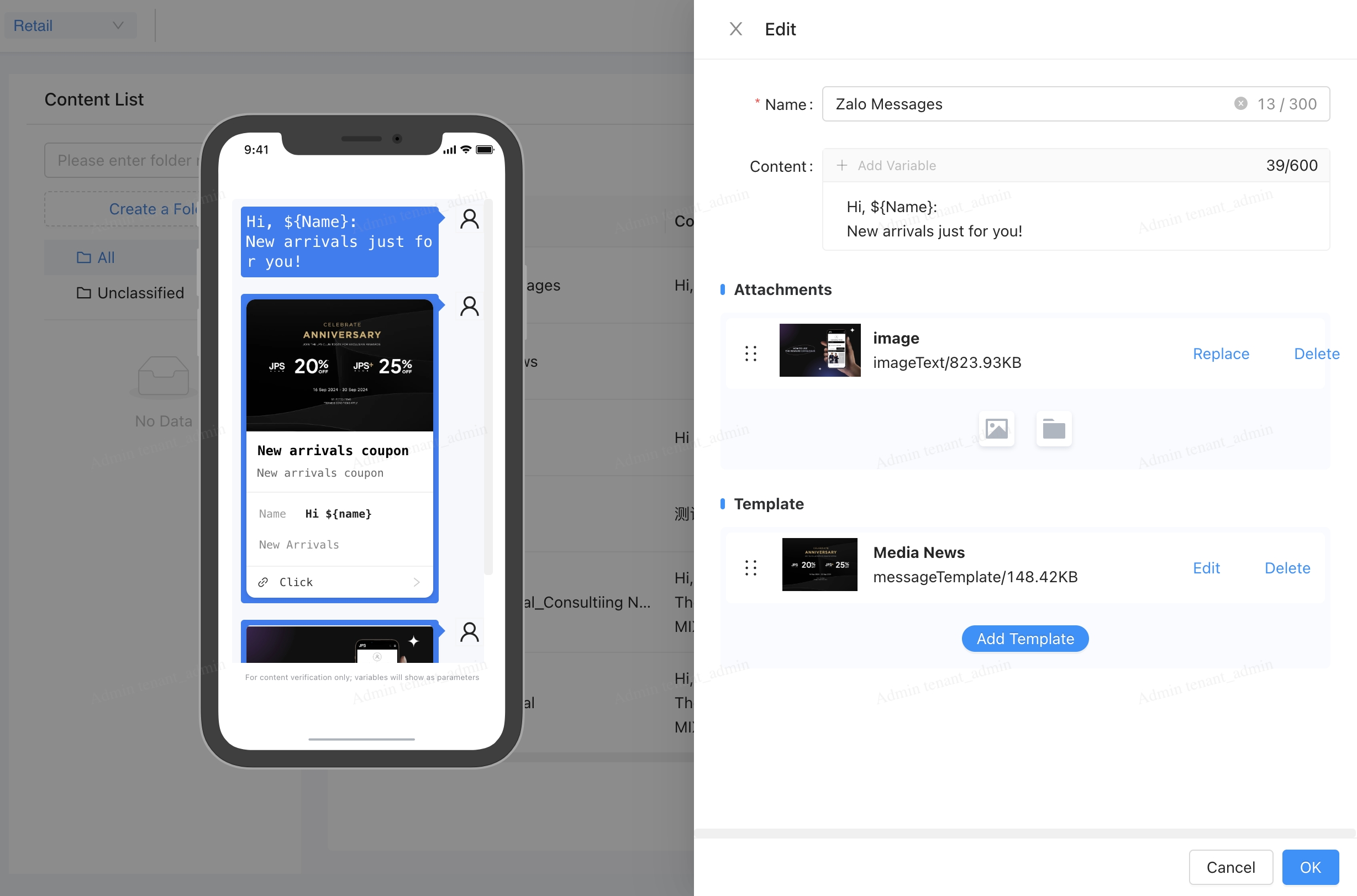 国际版 3.0 进一步扩展了与海外主流生态系统的无缝对接能力,不仅支持 Shopify、Magento 等电商平台,还深度整合东南亚超级应用 Zalo 的社交触点,覆盖 WhatsApp、Facebook、Google、Instagram 等全球主流渠道。通过统一的数据中台,企业可实时聚合公域流量与私域用户行为数据,构建跨平台、跨区域的用户全景画像,为精准营销提供数据基石。