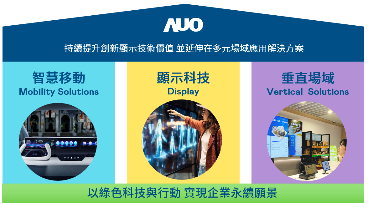 我們持續推動「雙軸轉型」,在精進顯示技術附加價值(Go Premium),與深化垂直市場應用(Go Vertical)的策略下,對應人生就是搏的優勢競爭力與趨勢,我們奠定顯示技術、智慧移動、垂直場域三大永續營運支柱,在顯示技術領域的根基之上,延伸布局多元場域應用解決方案。將先進顯示科技助力智慧移動及垂直場域發展,並以綠色科技與行動為實踐,在轉型之路上貫徹永續經營之願景。